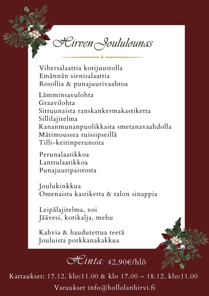 Lämpimästi tervetuloa nauttimaan Hirven perinteisestä joululounaasta.