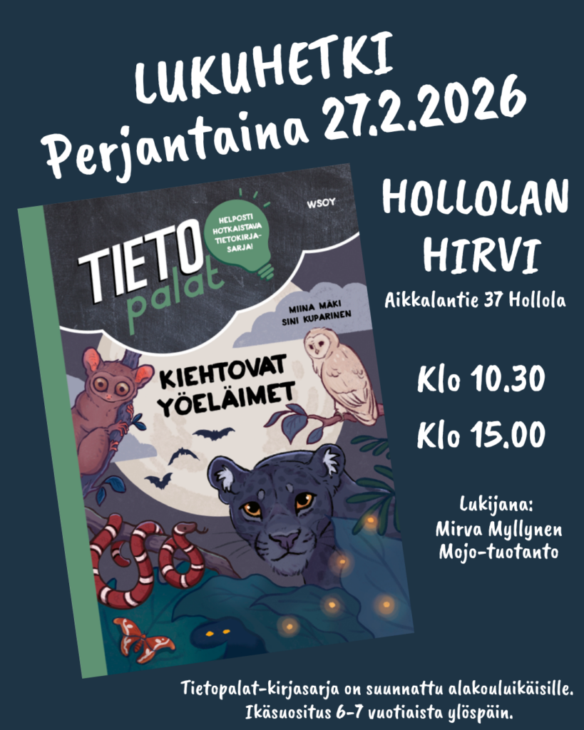 Tervetuloa talviloman lukuhetkiin perjantaina 27.2. klo 10.30 & 15.00.